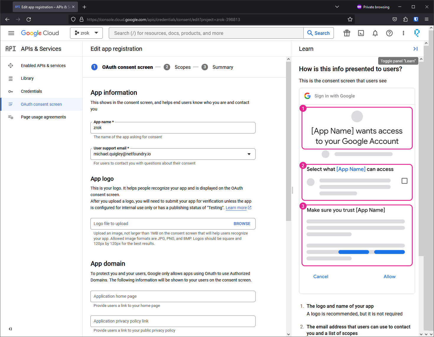 Add the ../auth/userinfo.email scope (required for zrok to receive user email addresses):